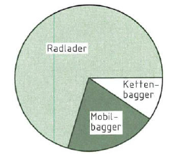 Das Kreisdiagramm zeigt den Einsatz von Baumaschinen auf einer Baustelle. Wie groß (in %) ist der Anteil der Mobilbagger?