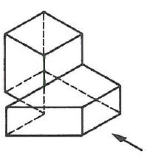 Welches Bild zeigt die richtige Ansicht in Pfeilrichtung des räumlich dargestellten Körpers?