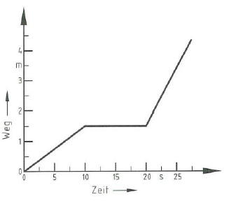 Welche Aussage über den Zeitabschnitt von Sekunde 10 bis Sekunde 20 im abgebildeten Schaubild ist richtig?