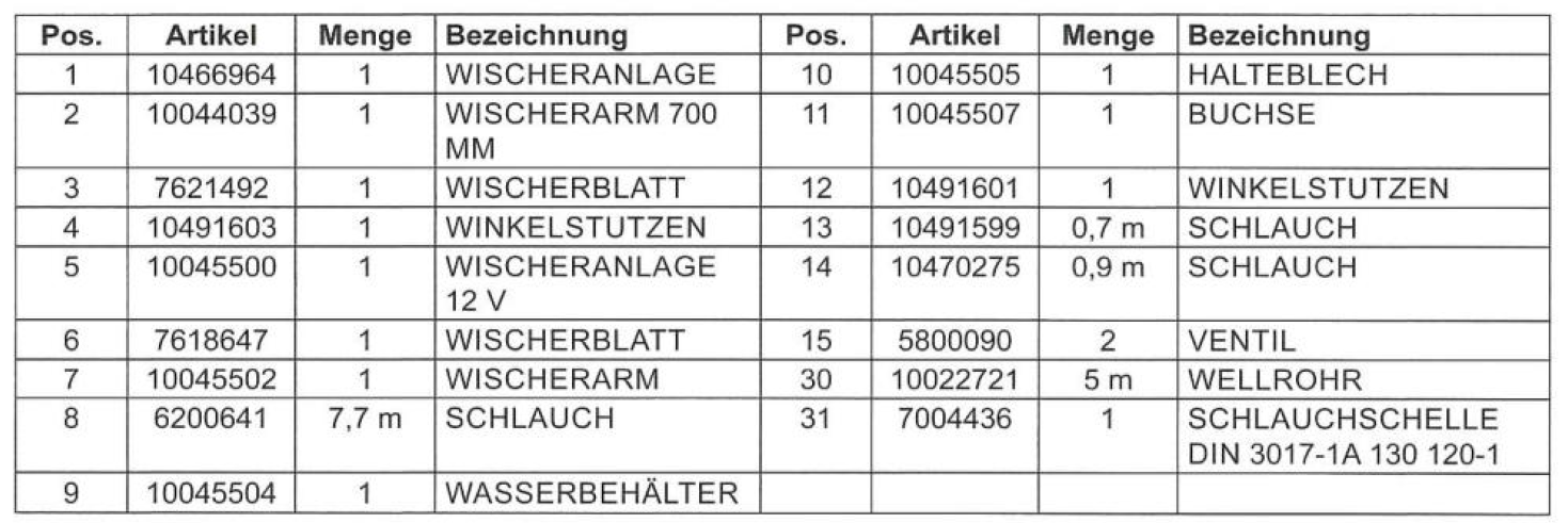 Für ein Baugerät muss ein neuer Wasserbehälter für Wischwasser für die Frontscheibe bestellt werden. Welche Artikelnummer muss bei der Bestellung angegeben werden?