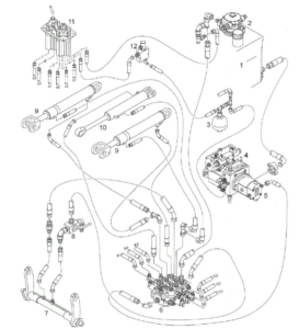 Die Abbildung zeigt die Hauptbestandteile einer Arbeitshydraulik. Wie wird Bauteil 7 bezeichnet?