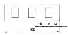 Wie groß ist das Maß x (in mm) des skizzierten Blechs mit den drei gleich großen Ausschnitten?