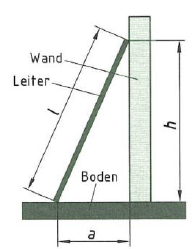 Eine Leiter mit einer Länge l = 7,2 m soll die Wand in einer Höhe h = 6,9 m berühren. Welchen Abstand a (in m) hat der Fuß von der Wand?