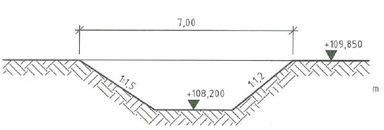 Wie viel m³ Aushub sind bei dem abgebildeten Graben bei einer Länge von 24,00 m und einer Auflockerung von 15 % abzufahren?