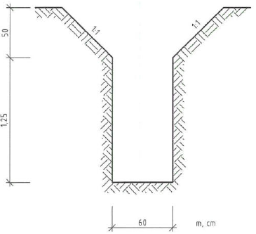 Wie viel m³ Boden müssen für den skizzierten 30 m langen Graben ausgehoben werden?